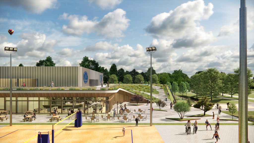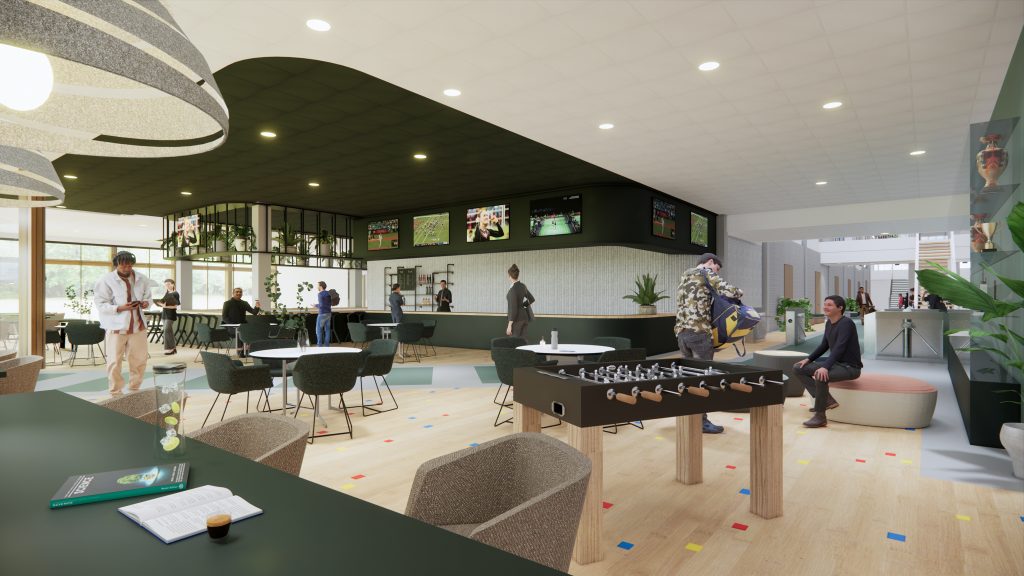 Het nieuw te bouwen complex heeft een oppervlakte van circa van 9.000m², is energieneutraal en heeft een hoge ambitie op het gebied van circulariteit, klimaatadaptatie en biodiversiteit. Het ontwerp bevat 2 sportzalen, 3 dans studio’s en een body en mind zaal, een grote fitness met spinning, kleedruimten voor binnen- en buitensport en bijbehorende horeca en fietsenstalling. Het ontwerp heeft een open uitstraling want ‘zien bewegen doet bewegen’.