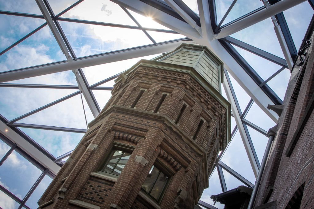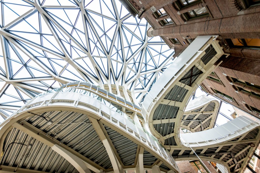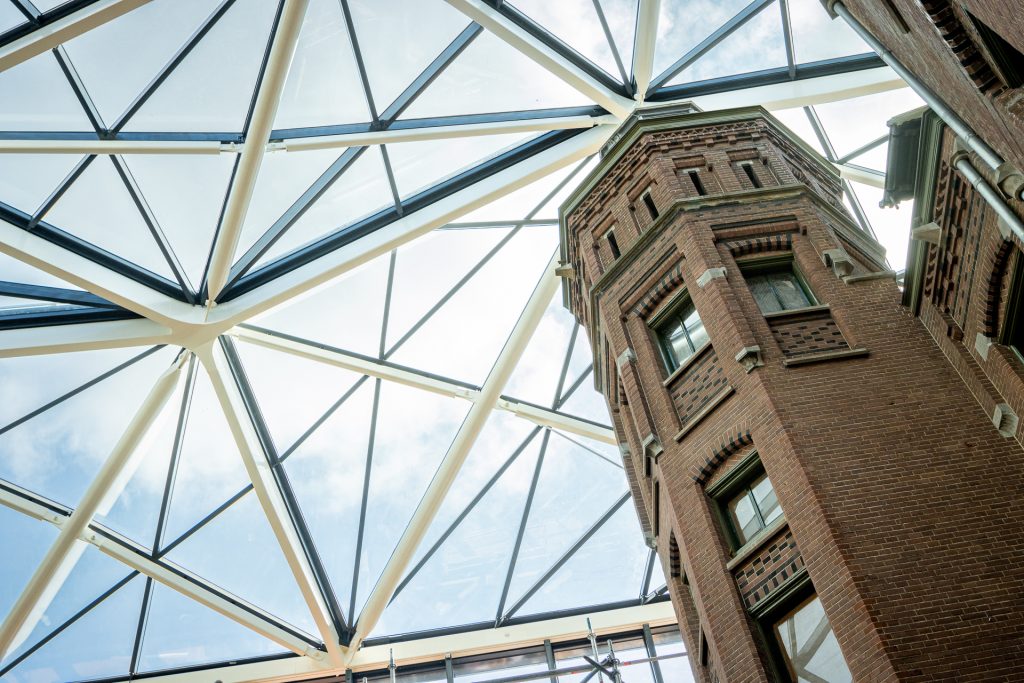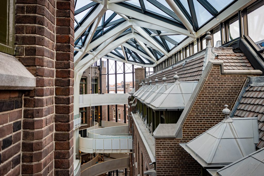 Voor het uitdagende project UvA Amsterdam hebben wij de samenwerking opgezocht met Koninklijke Woudenberg. Het prachtige ontwerp van de universiteitsbibliotheek is ontwikkeld door MVSA Architects en Architectenbureau J. van Stigt. De voormalige, monumentale klinieken worden volledig gerestaureerd en middels een ingenieuze glazen overkapping met elkaar verbonden, waardoor een spectaculair atrium ontstaat.
